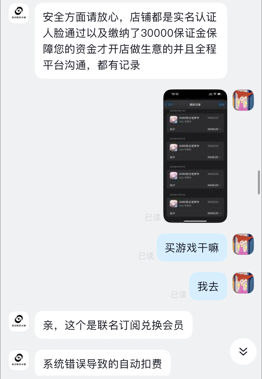 这时候谭女士意识到,名为“订阅会员”实则是诈骗。30分钟后,平台在谭女士的投诉下封禁了该店铺。